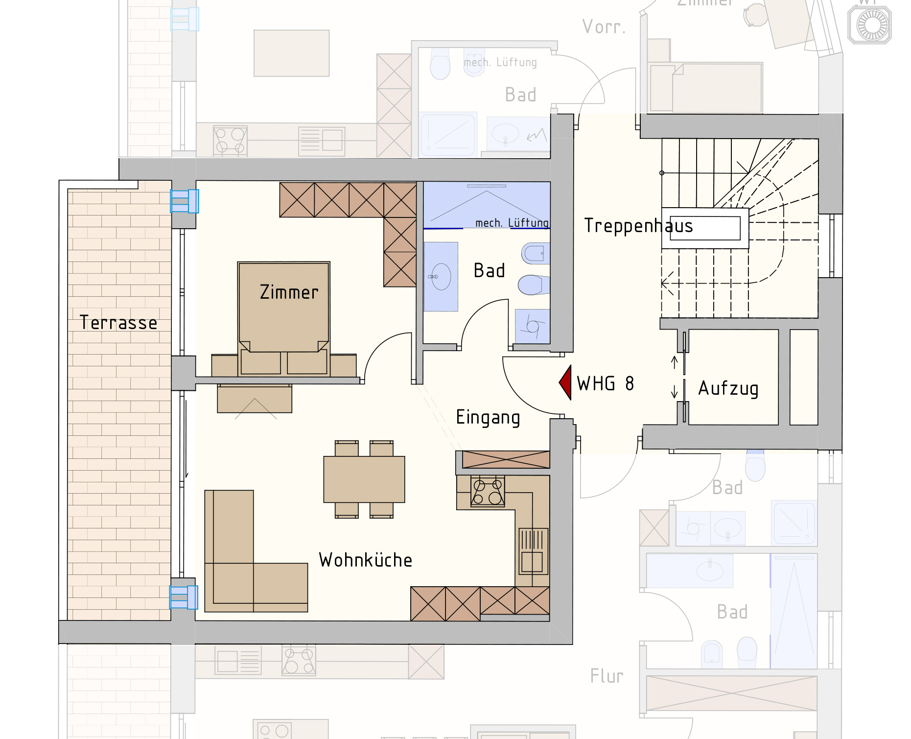 | B8 | 75 m² | 2. piano | App. con 2 stanze | |